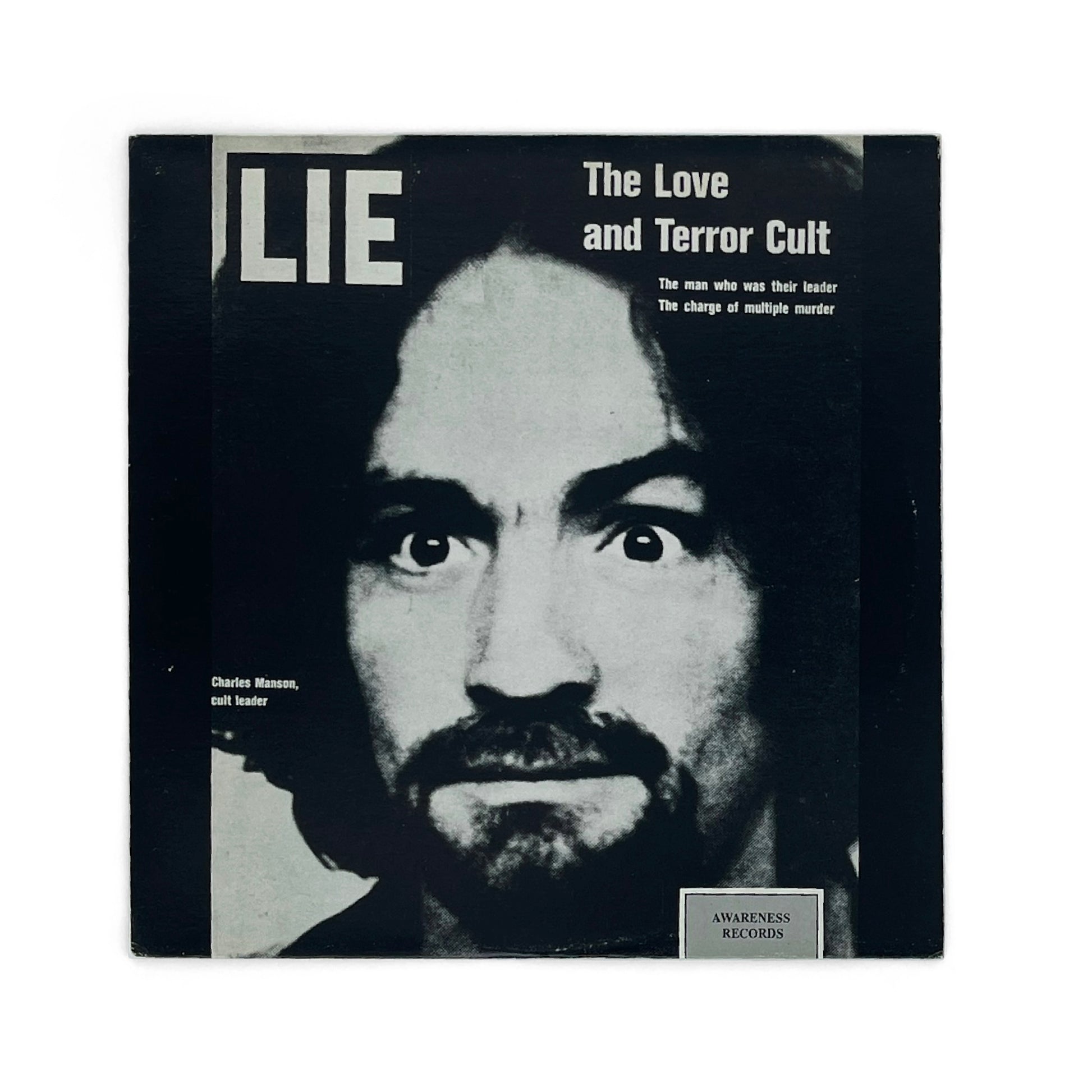 Sometime before committing a series of brutal murders that'd shock late 1960's America, Charles Manson recorded what would compose his first album, Lie: The Love and Terror Cult. Released shortly after Manson's arrest, not only is Lie a historically-significant early entry in the lo-fi / outsider psychedelic folk canon, but it also contains some genuinely excellent songs, that would strongly influence a large fringe of US counterculture, from Daniel Johnston to Kurt Cobain. Quite a terrifying pop culture artefact, it's nonetheless a great album, arguably better than a lot of Jandeck or D. Johnston's records... Early 1990's pirate version. (VG+/VG+)